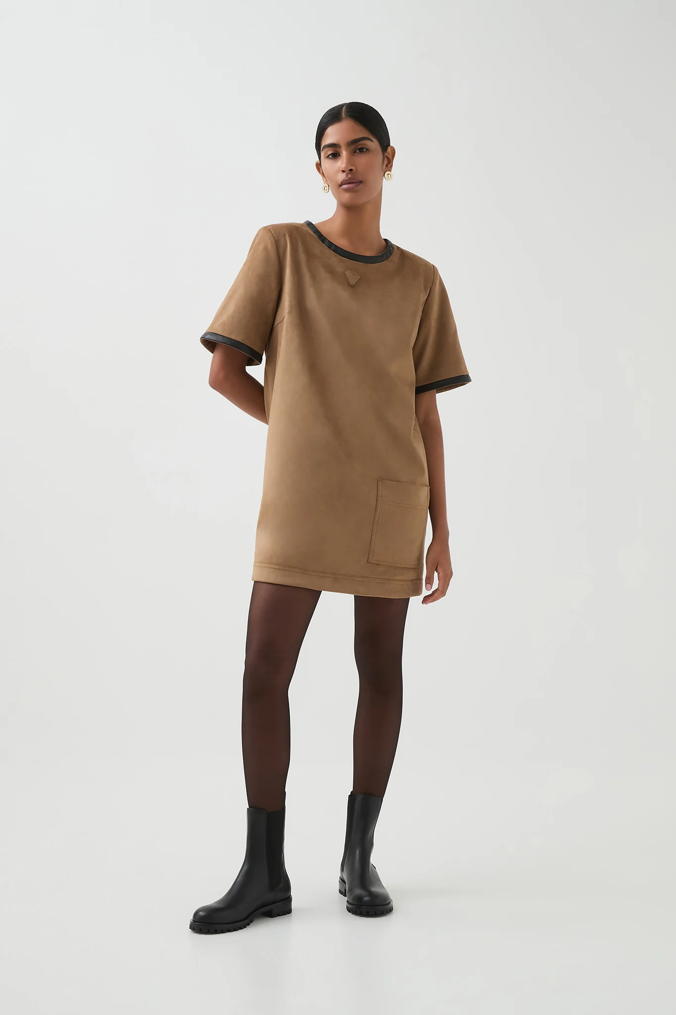 - Contrast panel at neckline and sleeve hem