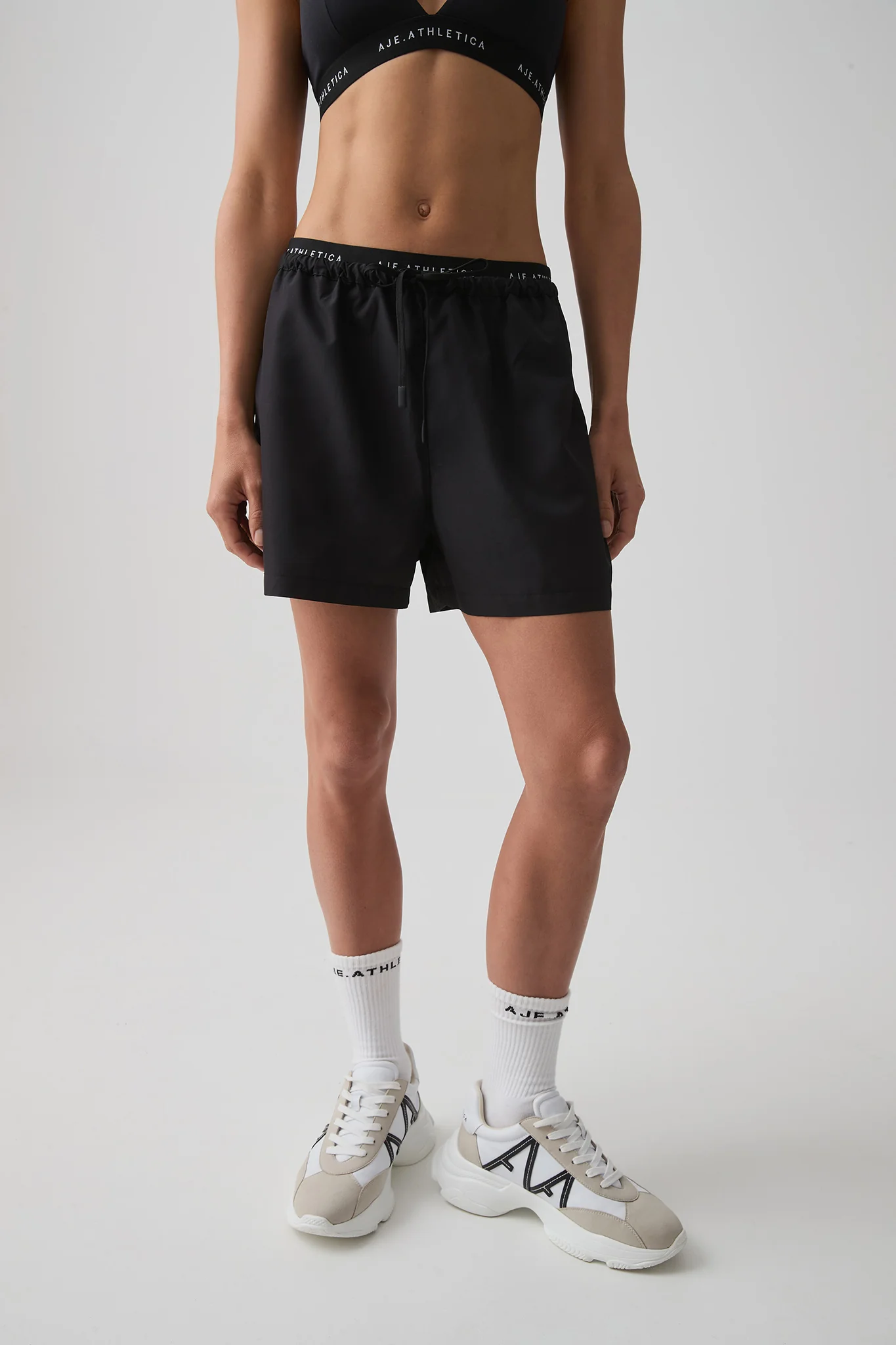 - Double waistband with logo detail