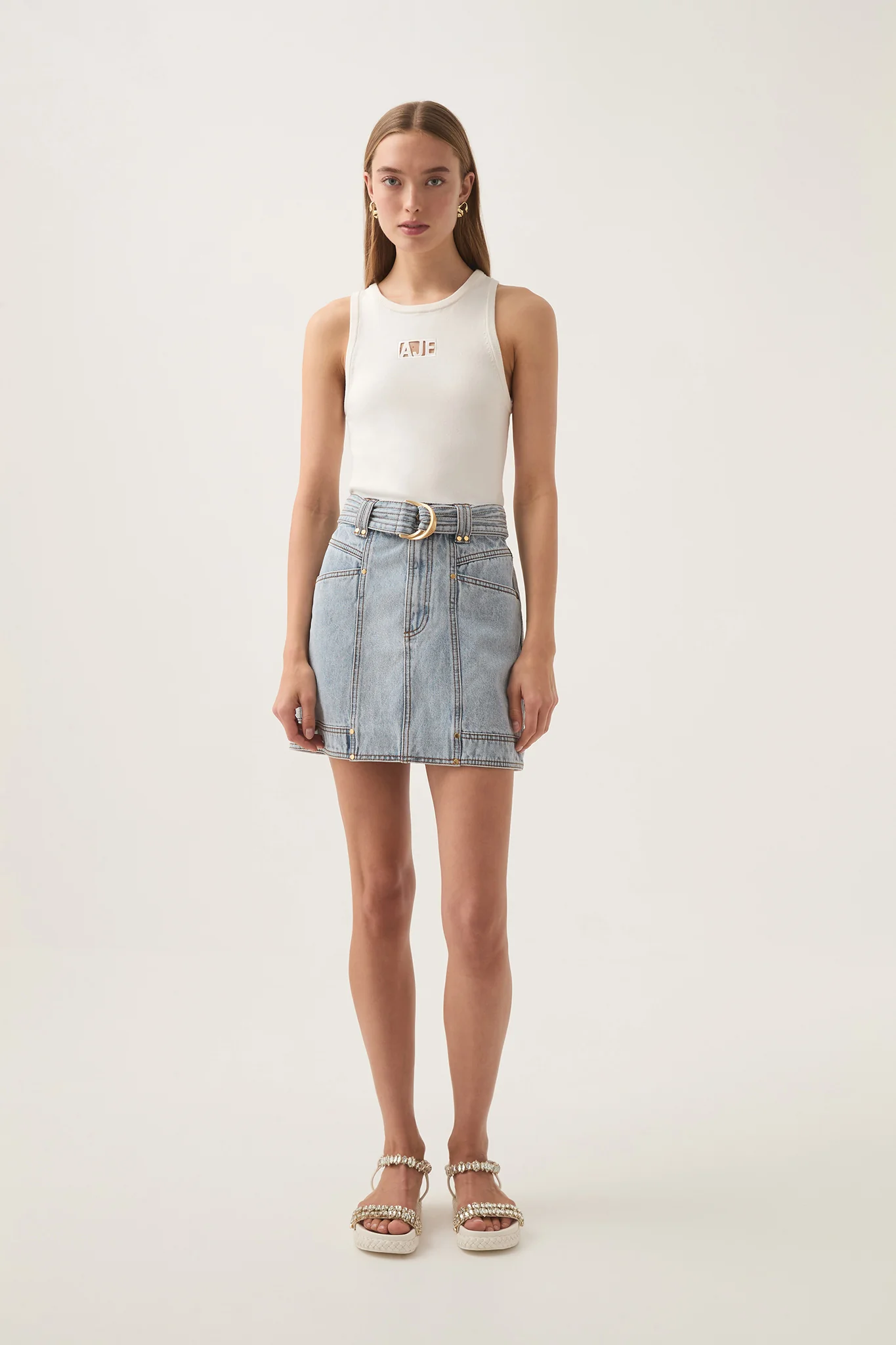 - Denim mini skirt